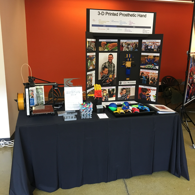 Student display of the 3D-printed Prosthetic Hand Project at Beachwood High School